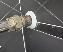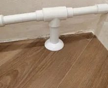 Способ монтажа: Обвод трубы одевается в обхват трубы, защелкивается и прижимается к полу.