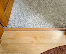 Способ монтажа: алюминиевый порожек крепится к полу на клеевую основу. Перед наклеиванием порога рекомендуем обезжирить поверхность.