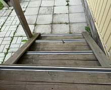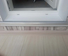 Способ монтажа: алюминиевый порожек без вставки крепится в проем между двумя напольными покрытиями или на ступени при помощи саморезов. Затем прорезиненную ПВХ вставку нужно нагреть строительным или обычным феном, либо подержать в горячей воде, чтобы материал стал мягче и легче вошел в паз профиля.